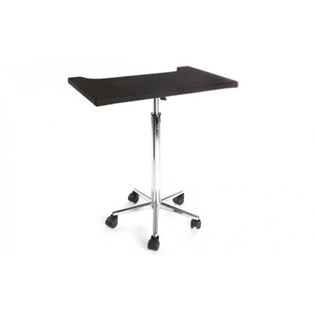 The PT-105 Posing Table has a black matte finish and features 360 degrees rotation. It has a maximum height of 37" and a minimum height of 28". Its top dimensions are 27" x 18".