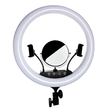 The kit's two mobile phone holders come with adjustable arms, providing the flexibility to stream and record from multiple devices simultaneously. With user-friendly control settings positioned at the front of the light, adjustments are easily within reach, allowing for quick changes during live sessions or shoots.