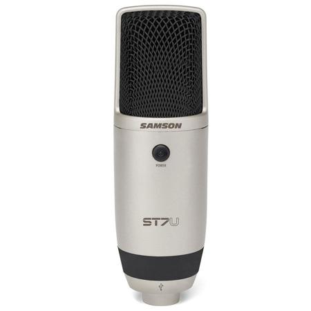 Samson's ST7U USB Condenser Microphone is an affordable solution for capturing studio quality audio on your computer. The ST7U's solid, die-cast body houses a large condenser capsule, as well as a headphone output for zero-latency monitoring. Perfect for recording music, it's also a full-featured vocal mic that will greatly improve vocal quality in all VOIP programs. With an internal shock-mounted mic element and a cardioid pickup pattern, the ST7U is able to capture the natural brilliance and emotion of spoken word, instrument and vocal performances without unwanted noise.