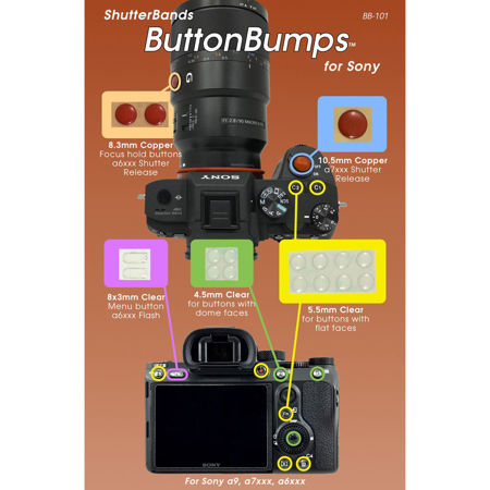 ButtonBumps are not just any stick-on bumper. They are custom-molded to fit each button on your Sony camera. So they look great and work even better. Bumps are included for all of the buttons on your camera, including the shutter-release button and focus-hold buttons on some Sony lenses.