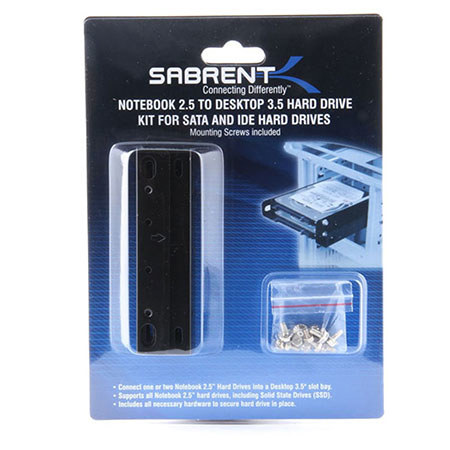 The Sabrent 2.5"Notebook to 3.5"Desktop Hard Drive Kit is designed for SATA and IDE Hard Drives. This Sabrent universal adapter converts your 2.5-inch notebook hard drive to function as a standard 3.5-inch PC compatible hard drive, so you can insert into a Desktop. Easily connect your 2.5-inch notebook SATA hard drive or an IDE hard drive to a 40-pin IDE cable, for installation in a desktop or tower PC. Each kit features a Universal Mounting Bracket, plus mounting screws.