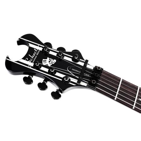 The Synyster Gates Standard is a more affordable version of the Synyster Gates Custom. This features the same wicked looks of the Avenged Sevenfold guitarist's signature model, but with a few different components, such as a bolt-on mahogany neck rather than a set neck, a rosewood fretboard in place of ebony and Duncan HB-108 humbuckers rather than the custom Invaders on the Custom model. You still get the "SYN" and DeathBat inlays, a Floyd Rose tremolo and the awesome gloss black finish with silver pinstripes.