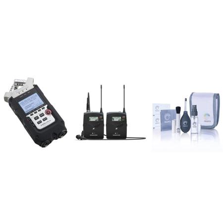 Sennheiser ew 112 P G4 Camera Lavalier Set, Bodypack Transmitter & ME 2 Lav Omni Mic, G: 566 - 608 MHz - Bundle With Zoom H4n Pro Handy Mobile 4-Track Recorder, Cleaning Kit