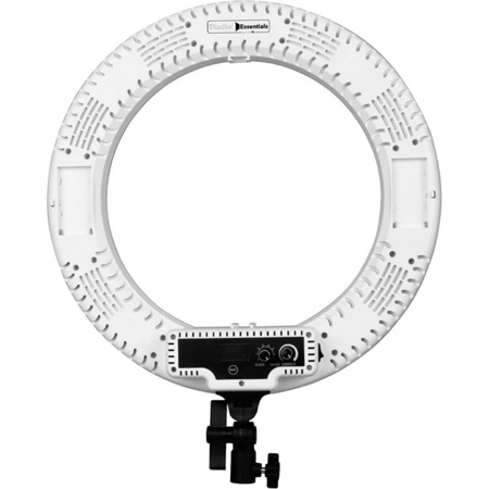 The Studio Essentials Bi-Color LED Ring Light is perfect for both photography and videography. Stylish controls allow for flicker-free adjustment for dimming the light. The circular shape of the LED lights evenly illuminates the subject, making this light perfect for vlogging, portraits and more. The diffusion filter provides a soft light output giving a gentle wrapping light to softly illuminate your subject. Bi-Color functionality allows you to adjust the color temperature of your light to match the ambient light.