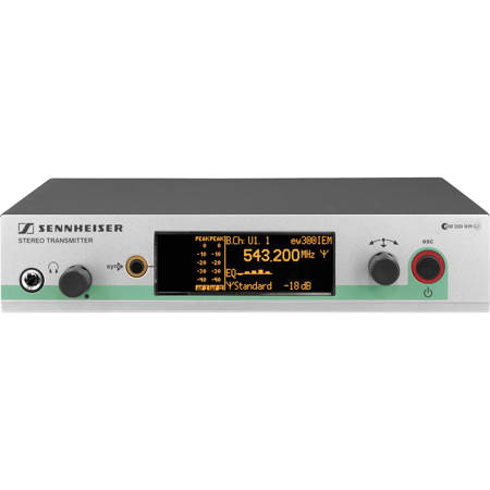 The Sennheiser SR 300IEMG3 Rack Mountable Wireless IEM Monitor Transmitter (B: 626-668MHz) is a rugged rackmount wireless audio transmitter. Ideal for monitoring applications, the transmitter has 1680 tunable UHF frequencies for interference-free operation. It also has a pilot tone squelch feature for eliminating interference when the transmitter is turned off.