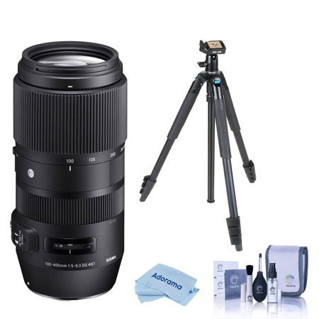 The bundle includes a Vanguard Vesta 203AGH Aluminum Tripod for stable shooting, as well as a cleaning kit and cloth to keep your lens and equipment in pristine condition.