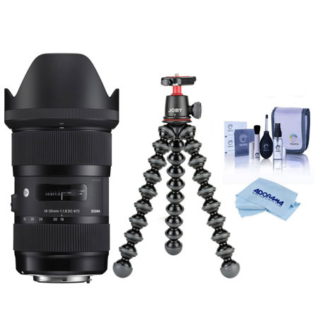 Discover a new realm of photographic excellence with our expertly assembled photography kit. Leading the pack is the Sigma 18-35mm f/1.8 DC HSM ART Lens for Nikon F, celebrated for its stellar optical finesse and versatile design. Paired perfectly with this is the JOBY GorillaPod 3K Kit in a classic black finish, granting you unparalleled stability and adaptability on any terrain. To ensure your equipment remains in immaculate condition, the ProOptic Complete Optics Care and Cleaning Kit offers comprehensive maintenance, while the Adorama Microfiber Cleaning Cloth, sized at a convenient 5.8x5.8", swiftly handles smudges and dust. Dive into a world where clarity meets creativity with this exceptional kit.