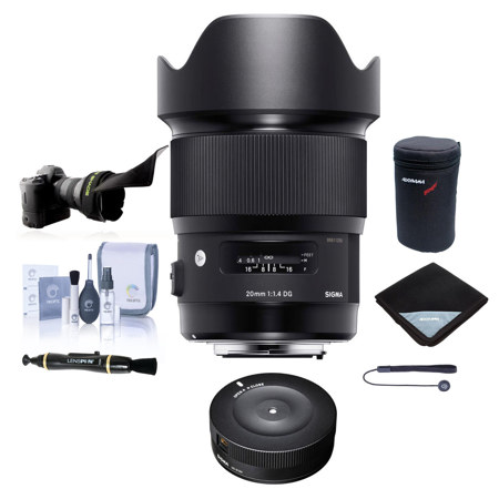 Sigma 20mm f/1.4 DG HSM ART Lens for Canon EF, Bundle with Flex Lens Shade, Lens Wrap, Lens Case, Cleaning Kit, Cleaner, Sigma USB Dock, Cap Tether