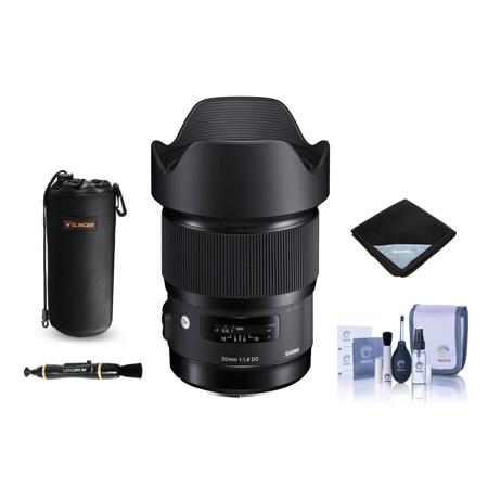 The bundle includes a lens wrap, lens pouch, cleaning kit, and lens cleaner, providing everything you need to maintain the lens in optimal condition. Experience the difference with the Sigma 20mm F/1.4 ART DG HSM Lens for Sony E.