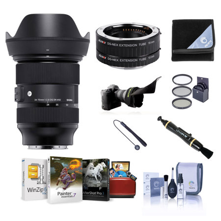 Sigma 24-70mm F2.8 DG DN Art Lens for Sony E, Bundle with ProOptic 82mm Filter Kit, Flex Lens Shade, DG-NEX Tube Set, Lens Wrap, Cleaner, Lens Cap Tether, Cleaning Kit, Mac Software Kit
