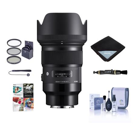 Sigma 50mm f/1.4 DG HSM ART Lens for Sony E, Black, Bundle with 77mm Filter Kit, Lens Wrap, Cleaning Kit, Lens Cap Tether, Lens Cleaner, PC Software Kit