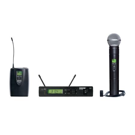 The Shure ULXS124/85-J1 wireless microphone systems provide professional wireless microphone solutions for broadcast, performances, conferences, houses of worship, schools and businesses. This combo-system includes the ULXS4 diversity receiver, ULX1 bodypack transmitter, WL185 Lavalier Microphone and ULX2 handheld transmitter with a Shure SM58 cardioid head.
