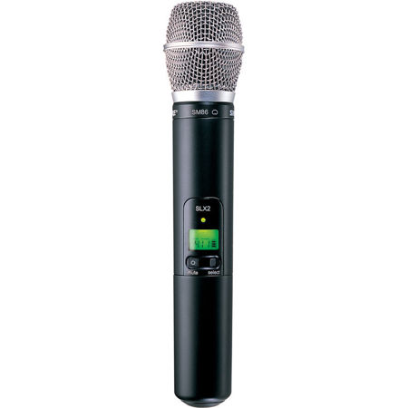 With an interchangeable SM86 microphone cartridge, the SLX2/SM86 includes a timed backlit LCD display, frequency and power lockout and Mute functionality. The SLX2/SM86 Handheld Wireless Microphone Transmitter works with SLX Wireless Systems.