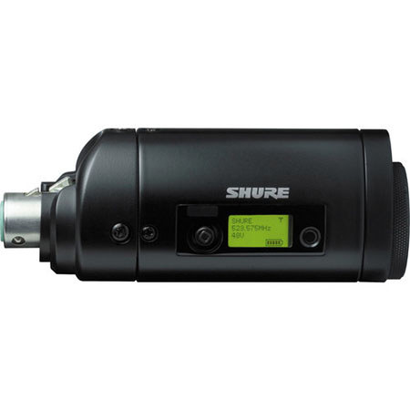 The Shure UR3 Plug-on Wireless Microphone Transmitter for UHF-R Wireless Systems (H4:518 - 578MHz) is designed to turn any XLR microphone into a wireless transmitter compatible with Shure's UHF-R's wireless systems. The unit itself is ergonomically designed to be comfortable in your hand as an extension of your microphone. It has a backlit LCD display that allows you to create up to 10 microphone ID lists for fast recall of commonly used settings. Aside from use with microphones, the UR3 accepts line level sources. It syncs to a UHF-R series receiver via infrared. It is powered by two AA batteries that can provide up to 10 hours of life when used with a dynamic mic.