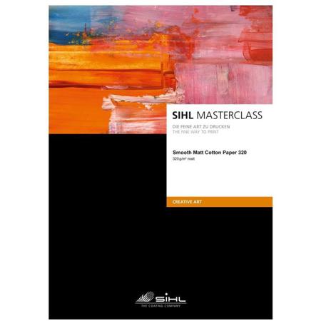 Sihl's MASTERCLASS Smooth Matt Cotton Paper 320 is a heavyweight 100% cotton natural white paper with a homogeneous smooth surface that achieves deep rich blacks, brilliant colors and perfect sharpness with superior detail reproduction.