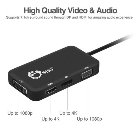 Easily add a DisplayPort, HDMI, DVI or VGA display to a Thunderbolt 3 or DisplayPort Alternate mode capable USB-C port.
