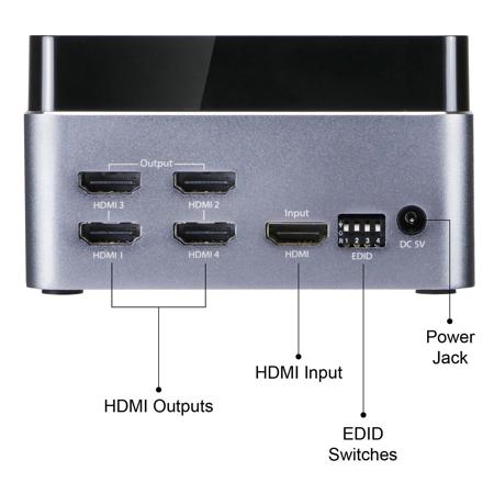 The Premium 4-Port HDMI Splitter with EDID - 4Kx2K 60Hz distributes a single Full HD HDMI source to 4 HDMI displays simultaneously and supports video resolutions up to 4K.