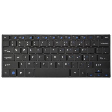 Compact footprint keyboard with frame-less low profile slim line design frees up desktop space