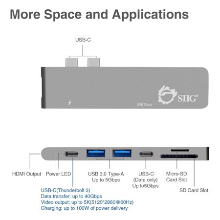 The Thunderbolt 3 USB-C Hub HDMI with Card Reader & PD Adapter is a great expansion companion for MacBook Pro. It adds multiple ports simultaneously to increase connectivity.