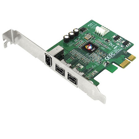 The FireWire 800 3-Port PCIe host adapter comes with two 9-pin (1394b) and one 6-pin (1394a) ports, providing flexible data transfer rates up to 800Mb/s and 400Mb/s respectively. The onboard power connector provides a reliable power source. Included with the FireWire 800 3-Port PCIe are a FireWire 800 driver CD and user's manual. The FireWire 800 3-Port PCIe is powered by Texas Instruments chip and is fully compliant with the PCI Express Base Specification Revision 1.0a. It is also FCC Class B (DoC) & CE regulatory approved and RoHS compliant. The FireWire 800 3-Port PCIe is fully compatible with a wide variety of Windows and Mac OS operating systems.