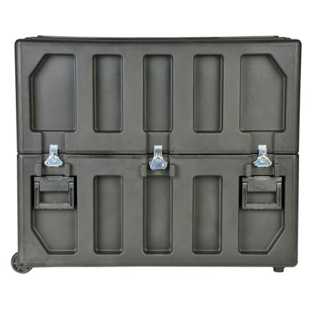 The case features a weather resistant gasketed tongue and groove valance, heavy-duty twist latches with a padlockable latch on each side, easy glide wheels for easy maneuvering and one durable cushioned rubber over-molded handle in the front with two durable cushioned rubber over-molded handles on each side. This provides the perfect solution for storing your larger LCD screens in the storeroom or transporting to the trade show or conference center.