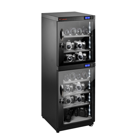 The Slinger Electronic Dry Cabinet 175HS is the state-of-the-art way to preserve the value and quality of your photographic equipment, lenses and all moisture sensitive objects. The advanced thermoelectric desiccation cooling wafer technologies built into this cabinet, prevent insipid microscopic fungi and corrosive damage, stemming from excess environmental humidity, without the use of noisy compressors. The lockable climate control chamber is sealed air tight to keep your precious articles in pristine mint condition, featuring 6 adjustable padded shelving to cushion against abrasion and a double paned glass windowed door.