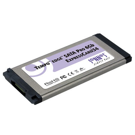 The Sonnet Tempo Edge SATA Pro 6GB ExpressCard/34 is well suited to deal with the increased bandwidth requirements of 6 Gb/s SSDs. Built around a new, second generation chipset, it offers greatly improved performance over older 6 Gb/s eSATA cards and is capable of transferring files at up to 375 MB/s. Onboard cache enables this Sonnet controller to perform even better in the latest computers and Sonnet's Echo ExpressCard Pro Thunderbolt adapter.