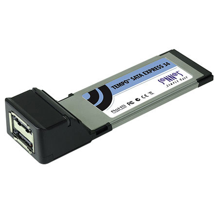 The Tempo SATA ExpressCard/34 Controller Card from Sonnet adds two eSATA ports to your notebook computer. It installs in the ExpressCard/34 slot and is fully compatible with Mac and Windows systems. The eSATA interface supports bus transfer speeds of up to 300MB/sec, making this card an excellent choice to allow you to add high-speed and capacity external storage to your laptop computer.