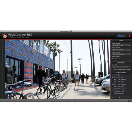 The Softron MovieStreamer HLS is an audio/video streaming application designed for Mac users looking to stream professional grade audio and video to the Net. MovieStreamer HLS accepts video from input devices that support Apple's AV Foundation and encodes the stream into HTTP Live Streaming at multiple bitrates to multiple destinations. MovieStreamer HLS is Live streaming made easy. Select your source (the video card you will use), the destinations (where you will record your stream to), the Output formats (the bitrate, resolutions that you want to use) and click on the record button. MovieStreamer HLS will create all that is required for the HLS format.