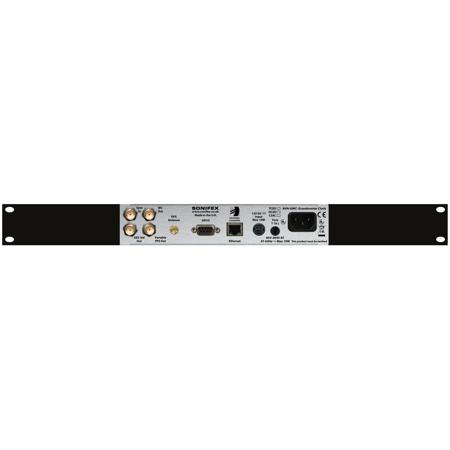 The unit has a front panel power button and dual power connectors - an IEC mains input and a 12V DC input, which allows the AVN-GMCS to be used for both studio and mobile installations. Moreover this allows for a secondary power source to reduce the effect of power down events. In any case, the unit monitors the status of both power sources and displays this on the front panel. In power off situations, a super capacitor is used to keep the GPS receiver powered in a low power mode for more than 20 hours, enabling the receiver to regain lock immediately rather than having to 'cold' start.