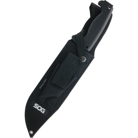 And another great SOG in my collection ! An awesome knife to carry in the field. Not only do I feed somewhat protected lol, but it is an amazing knife, the nail puller/wire bending addition to the blade as well as the serrated teeth make this a must have in your collection if you spend any time out doors at all. When you strap this puppy on you feel like you should feel thus the name Jungle Primitive. I have used mine to cut branches in the way in a tree stand to cutting tinder to start a fire with the serrated edge. And the blade stays sharp, a must if you use your knives. I started out with a Flash II and I am addicted to SOG knives now. I can't own enough of them something the wife just doesn't seem to understand. I admit at first I just wanted to collect them just because they look great. But after using all my SOG's and just having to touch up the blade after hard use and to run it down the steel a few times I am back in shape and mine still looks new. The sheath is great as well and rides well on a belt. Cant say enough about SOG's as I said I am addicted to SOG and won't own or carry another knife out there. The pricing on their knives are extremely reasonable for what you get and I believe I would put my knives in my collection against any other competitor out there. THIS ONE IS A MUST OWN. James