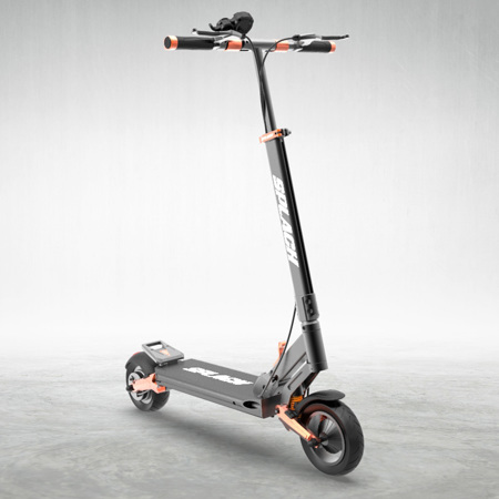 8.5" pneumatic front tire, 8" solid rear tire