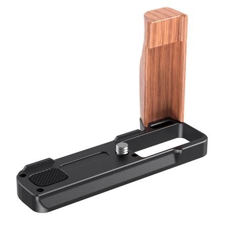 SmallRig L-Shaped Wooden Grip for Canon G7X Mark III LCC2445 provides a comfortable grip for handheld shooting. It mounts to the camera by a 1/4 screw, and features multiple 1/4 threaded holes on the bottom for tripod mounting. It also leaves a strap hole on the side for small hand strap. The whole product is formfitting and with beautiful finish.