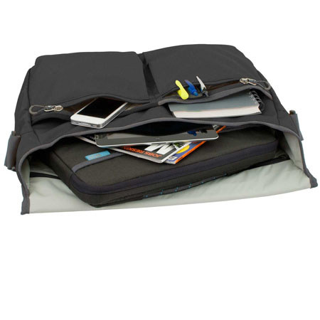 The STM Nomad 13" Laptop Shoulder Bag (Small, Graphite) carries and protects your digital gear and daily necessities, complete with a removable laptop sleeve. It features external zipper pocket to secure valuables and multiple organizer pockets with space for pens, keys, cords, cables and accessories.