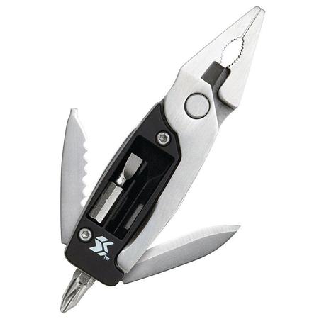 The T-Rex Pocket Tool Kit is a handsome, sturdy, palm-sized multi-tool that has 7 functions. The stainless steel tools are complimented by an ABS housing that holds two screwdriver bits for easy access and storage. Pliers handle stays in place with an integrated locking mechanism.