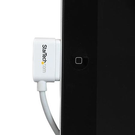 The StarTech USB2ADC1MR 1m (3.28') USB White Cable for iPhone, iPod and iPad features a right-angled Apple (30-pin) Dock Connector which positions the cable in such a way that it allows you to easily access your iOS-enabled mobile digital device in both portrait and landscape mode, even while charging. Plus, the USB to iPhone cable features a uniquely constructed stepped Apple Dock Connector, designed by StarTech. Unlike a regular connector, the exclusive stepped connector plugs into your iPhone, iPod or iPad, even when inside a protective case, avoiding the inconvenience of having to constantly remove the cover for every charge/sync.