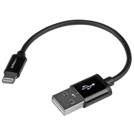 The StarTech USBLT15CM 15cm (5.90") Short Apple 8-pin Lightning Connector to USB Black Cable for iPhone, iPod and iPad enables close-range syncing and charging of your Lightning-enabled mobile digital devices. The cable is colored to suit black mobile devices and is short enough to minimize the clutter of excess cable, making it ideal for charging in your vehicle or for syncing to your laptop. Plus, the shorter cable design provides a portable solution that makes it perfect for carrying as a tablet or laptop accessory.