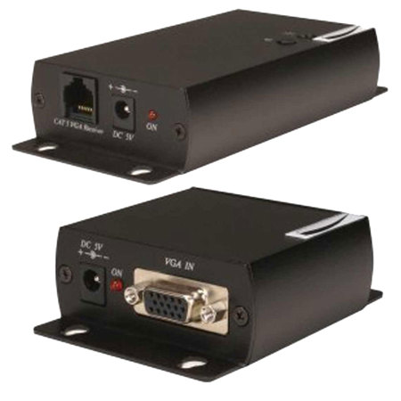 The VGADISTK2 is designed for long-range VGA distribution over cost-effective CAT5 UTP cable. One or multiple video input to 2 outputs, with one VGA loop output for the local side and RJ45 (CAT5 UTP cable) to the remote side. This unit has a built-in amplifier for long range VGA signal transmission up to 980' (300m) in conjunction with the included VGAR active long-range receiver. This unit is ideal for classrooms, lecture halls, retail kiosks, video information displays, overhead projector systems, PC-training systems, trade shows and more.
