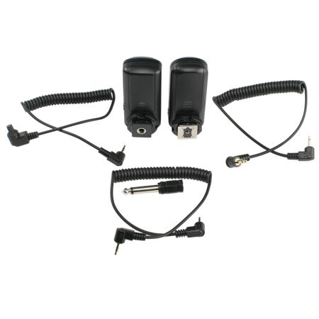 The Smith-Victor 2.4GHz Studio Flash Trigger allows for remote triggering from up to 300' (91.4m) away. This set features a transmitter and receiver with 16 channels, selectable through switches on the triggers, which limit interference with other systems. Flash synch speeds of up to 1/250 second are supported. The hot shoe mount on its receiver, cables and adapters make this flash trigger compatible with other flashes and monolights. This model includes shutter release cables for Canon cameras.