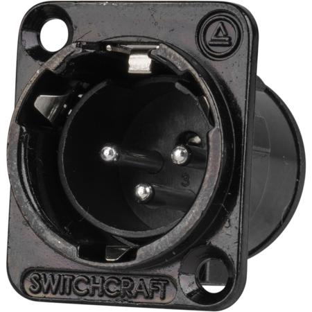 The Switchcraft E Series 3 Pin XLR Male Panel Mount Connector (Solder Contacts, Silver Pins, Black Finish) is a small screwdriver can be used to remove the inserts, allowing for easy gender changes. It fits into the same panel cut-outs.