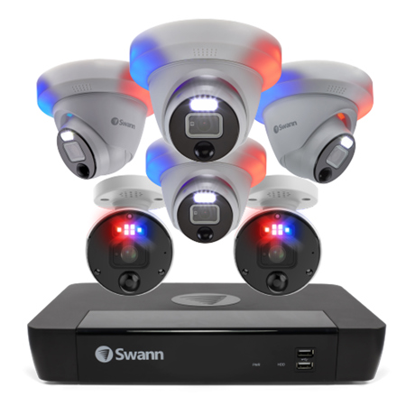 Why settle for less when you can have the most advanced, high-tech security system in its class The 4K Ultra HD 8-Channel Pro Enforcer 2TB NVR Security System from Swann is designed to prevent crime and provide comprehensive surveillance. Equipped with controllable sensor spotlights featuring red and blue flashing lights, this system is a powerful deterrent to potential intruders.
