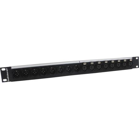 The Switchcraft 1RU QG Panel with 8 Male and 8 Female XLRs Pre-Loaded features a 19" rack unit loaded with E Series QG connectors. This unit has connectors and solder cup terminals for easy soldering. The inserts are removable from the back, allowing for easy changes. This unit comes with a rugged cable tie bar, which takes the weight of the cabling away from the solder connections.