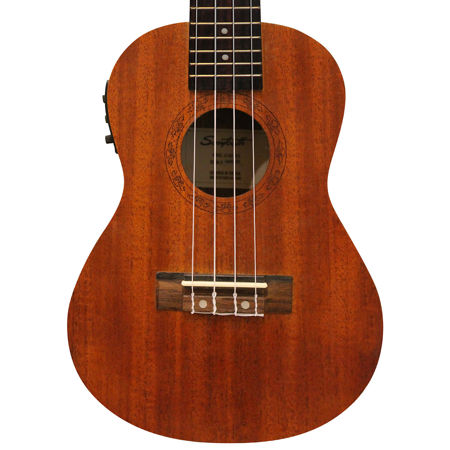 Sawtooth Mahogany Ukuleles are a great value. The mahogany top, back and sides produce a warm, rich mid-range tone. A perfect uke for a player at any level. Concert ukuleles produce a fuller tone and allow for more room between the frets than soprano ukes. The extra room on concert ukes also allows players to perform more technical skills during play, while still maintaining the classic uke sound.