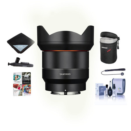 I got this lens for night sky photography after comparing it to similar lenses, including the Canon 14mm f2.8l, on the Digitalpicture.com website. The side by side resolution charts clearly show that this is the sharpest of the 3 Samyang/Rokinon 14mm lenses (notably sharper than the SP version), and fully on par, if not a bit better than the Canon 14mm L lens, especially wide open. As soon as I received the lens I went out and tested it on my Canon 5Dsr. It is superb. Edge to edge sharpness is great, straight from 2.8, and distortion is remarkably low (simple barrel, not the complex mustache of similar lenses) and easy to correct in Lightroom. Add to this that the kit it's bundled with is quite good (bundled kits are usually not so hot). The cleaning kit and lens pen are top quality, and the pouch and lens wrap are also quite good. The cap-keeper is a trinket I won't use and the software doesn't interest me, but all in all, a great little bundle. Back to the lens: If you're considering a super-wide lens, try this one before spending more - you'll love it.