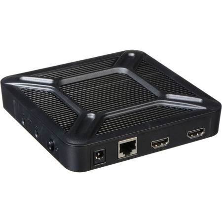 The whole system fits in a palm-sized enclosure and can be easily attached to a wall or the back of a screen with a VESA compatible mount.