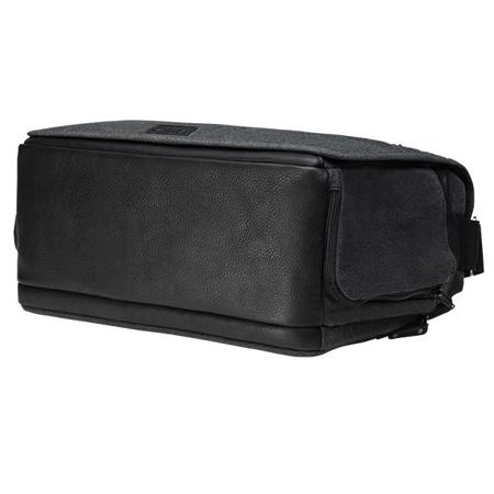 A svelt messenger style bag for a mirrorless camera with 2-3 lenses and accessories. It looks more like a laptop bag. Layout easy to customize. Top zipper allows access to gear without opening front flap. Shoulder strap pad excellent as it is soft on the shoulder and grips well reducing strain.