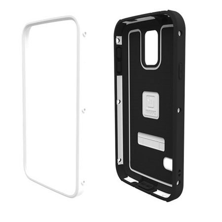 The Trident Cyclops White Case for Samsung Galaxy S5 provides superior protection against drops and other impacts in a slim design. It features shock-absorbing Thermo Plastic Elastomer (TPE) and polycarbonate, providing two layers of protection and outstanding protection against impacts. The hardened polycarbonate exterior allows it to slide in and out of pockets with ease.