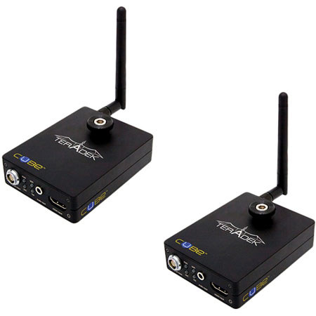 The Teradek Cube 250/450 HDMI Encoder/Decoder is equipped with an HDMI input/output, dual band Wi-Fi and an external USB port and is suitable for turnkey (ready for immediate use) on-set video monitoring. You can stream HD video over Wi-Fi and then receive the video signal (up to 1080p/24) on a small handheld monitor or a professional field monitor connected to the Cube decoder. In addition, it features line-of-sight (waves traveling straight line) Wi-Fi range up to 300' (91 m).