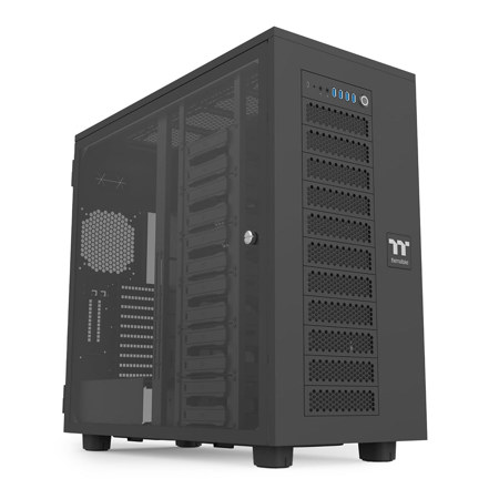 The AX700 TG Super Tower Chassis is a high-performance workstation super tower designed for content creators, small enterprises, and gamers, offering exceptional performance, storage, and cooling. It supports an XL-ATX motherboard, up to five 2-slot graphics cards, and eighteen 3.5" hard drives, making it ideal for demanding tasks like video editing and AI computing. With advanced thermal management, including space for up to eighteen 120mm fans and large radiators, the AX700 TG Super Tower Chassis ensures optimal airflow and hardware longevity.