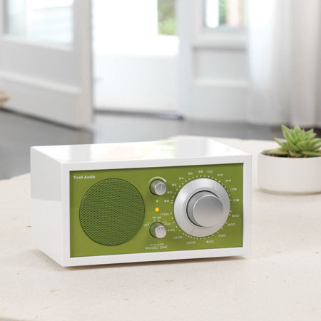The Tivoli Audio Frost White Collection Model One M1FWKG AM/FM Table Radio (Frost White/Kelly Green) is sure to please. The Frost White Collection Model One's design matches its celebrated sound with simple, clean lines and vibrant colors. Using the Henry Kloss analog AM/FM dial you can tune in to just about any station on the airwaves - and with the auxiliary input you can spice things up with the music collection on your iPod or other portable audio devices.